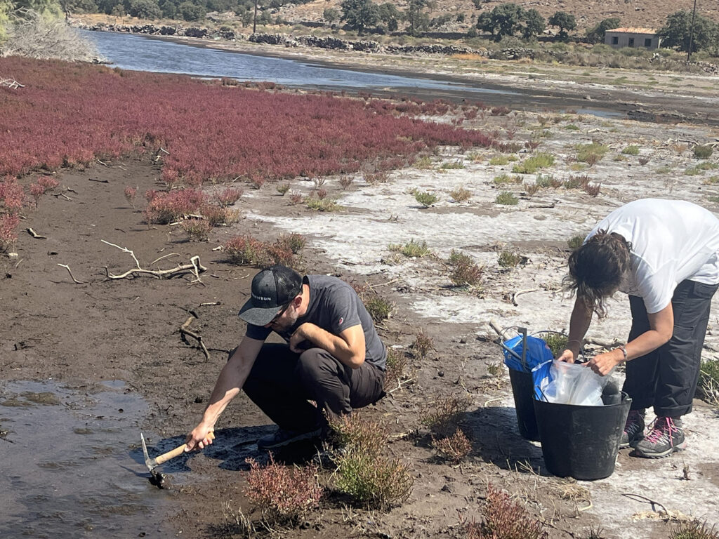 Συλλογή δειγμάτων (Simon Kübler και Πένυ Τσακανίκου) για την εδαφολογική μελέτη από υγρότοπος γύρω από τον Κόλπο της Καλλονής